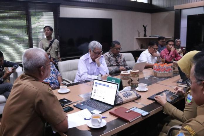 GARUT INTAN NEWS – Sekretaris Daerah (Sekda) Kabupaten Garut, Nurdin Yana, menerima kunjungan kerja dari Badan Gizi Nasional (BGN) bersama perwakilan Badan Perencanaan Pembangunan Nasional (Bappenas) di Ruang Rapat Bupati, Jalan Pembangunan, Kecamatan Tarogong Kidul, Senin (24/11/2025). Kunjungan tersebut merupakan rangkaian dari Uji Petik Koordinasi Strategis Perencanaan dan Pengelolaan Makan Bergizi Gratis (MBG) berbasis kewilayahan.