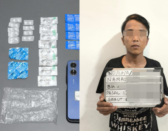 Kasatres Narkoba Polres Garut, AKP Usep Sudirman, S.H., mengatakan dari tangan pelaku petugas berhasil mengamankan sejumlah obat psikotropika yang diduga belum sempat diedarkan.
