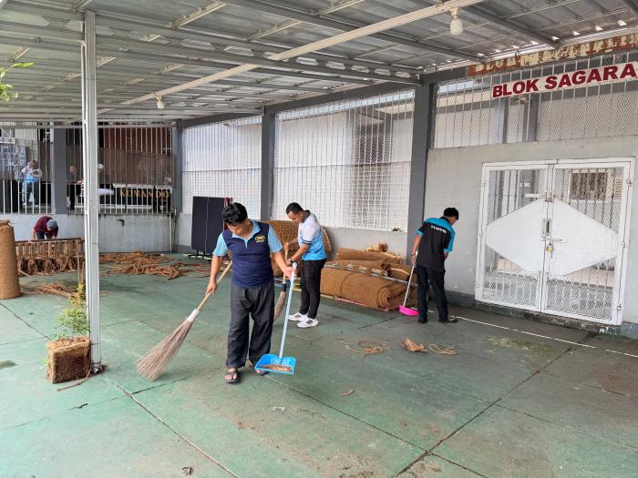 Usai pelaksanaan upacara pembukaan, kegiatan dilanjutkan dengan aksi bersih-bersih lingkungan kantor yang melibatkan seluruh pegawai dan warga binaan. Aksi tersebut menjadi bentuk nyata kepedulian terhadap kebersihan sekaligus upaya menciptakan lingkungan Lapas yang sehat, nyaman, dan tertata.